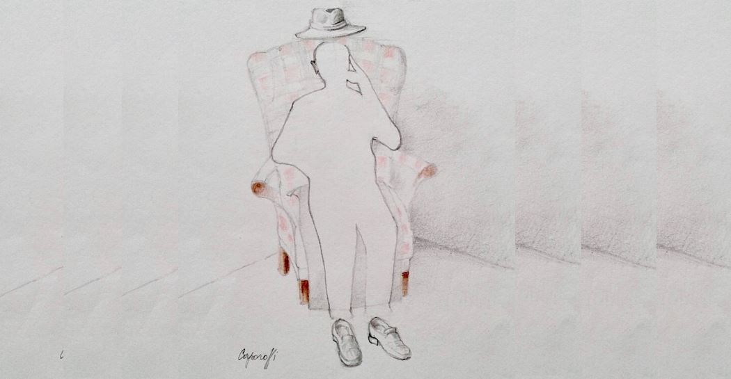 L’installazione AM di Riccardo Caporossi si propone come un ritratto che esce dall’anonimato: questa volta scarpe e cappello identificano fortemente la persona, perché a essa sono appartenuti realmente. Cimeli di un’esistenza che trattengono nelle loro fattezze una vita vissuta, quella di Alberto Moravia. Il suo corpo assente è lì, nella stanza da letto, e la sua ombra reale lo ricorda.